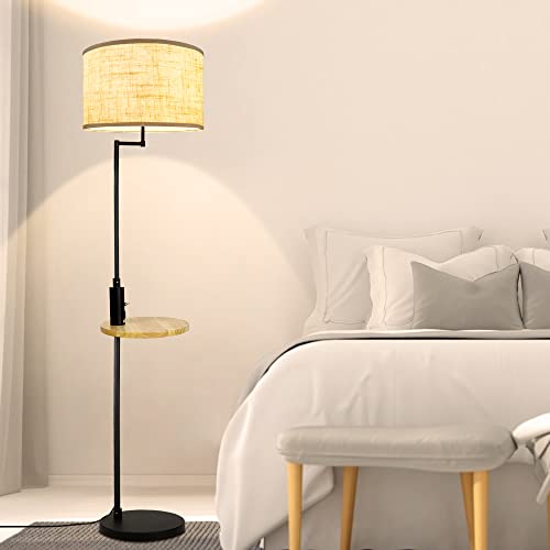 【Pratico scaffale in legno】 C'è una mensola rotonda sulla piantana led. È realizzata in legno di alta qualità. Puoi usare questa lampada come tavolo da lettura, scrivania. Fornirà una luce brillante. Inoltre, potresti mettere altre piccole cose sul tavolo.