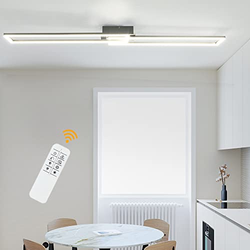 【Materiali di alta qualità】 Questa plafoniera dimmerabile presenta una semplice nichelatura spazzolata liscia con un aspetto duraturo. Metallo cromato, resistente alla deformazione, alla corrosione e alla dissipazione del calore. 2 strisce di cornice rettangolari con chip LED integrati sono altamente trasparenti, riproduzione fedele dei colori, nessun riflesso, nessun sfarfallio, migliore protezione della vista.