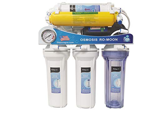 Depuragua Impianto Osmosi inversa Moon 75GPD 6 Fasi. Pompa manometro, remineralizador, Rubinetto Lux