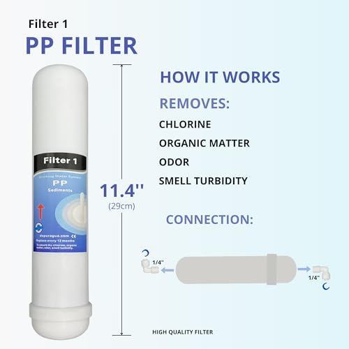 Realizzati in polipropilene, un materiale resistente e durevole, i nostri filtri per osmosi inversa assicurano una lunga durata e una filtrazione dell'acqua di alta qualità. Scegli la qualità e la durata, proprio come farebbe un filtro cto 5 o un depuragua filtri osmosi