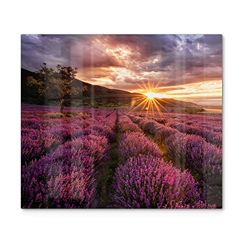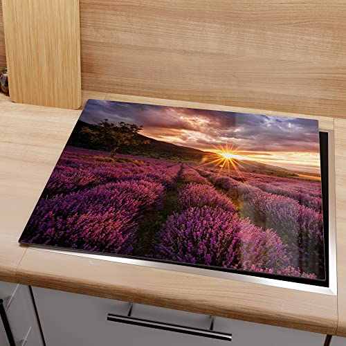 DEQORI Pannello di copertura per fornelli in vetro, 1 pezzo, 60 x 52 cm, motivo file di lavanda la sera | piastra di copertura per cucina | copertura per fornelli universale | piano in vetro e