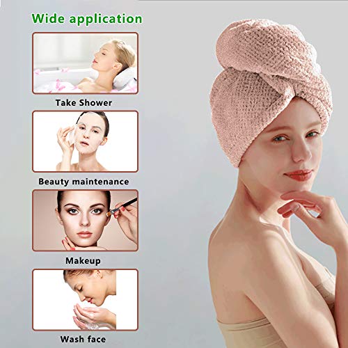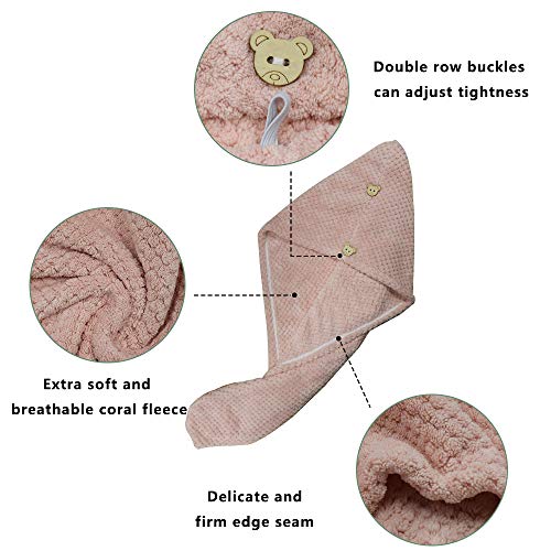 Derbway Asciugamani per Capelli a Turbante, Asciugamano per Turbante in Microfibra Super Assorbente ad Asciugatura Rapida con 2 Pulsante per Regolare la Tenuta, con un Gancio Adesivo Gratuito (Rosa)