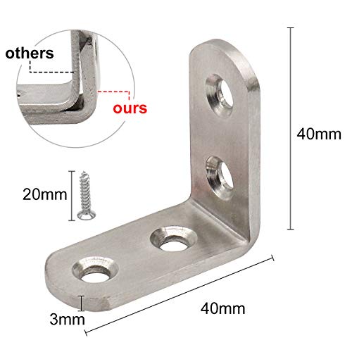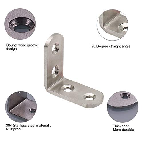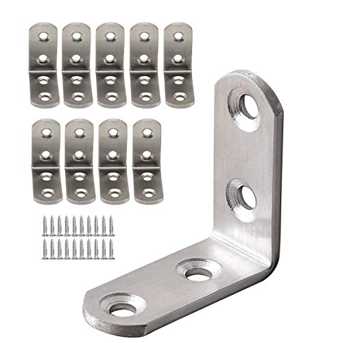 Derbway 10 Pezzi Angolo Retto Staffe, 90 Gradi Angolo Staffe, Staffe di Fissaggio in Acciaio Inox a Forma di L, Angolari Staffe con Le Viti (Due Fori)