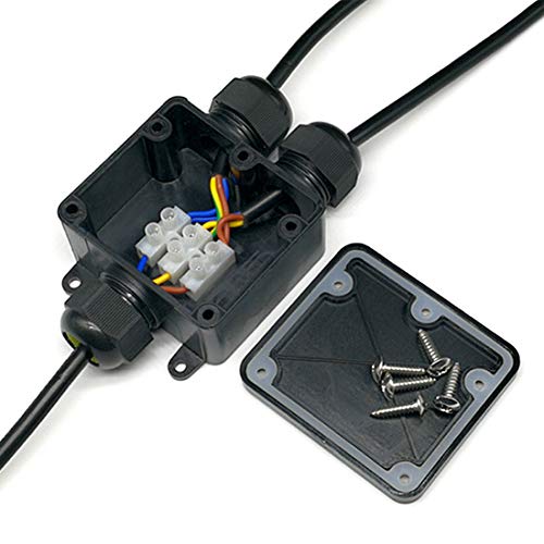 Derbway Scatola di Derivazione Impermeabile IP68, Connettore per Cavo Esterno a 3 Vie, Accoppiatore Esterno per Diametro Cavo 4-15mm (Nero)