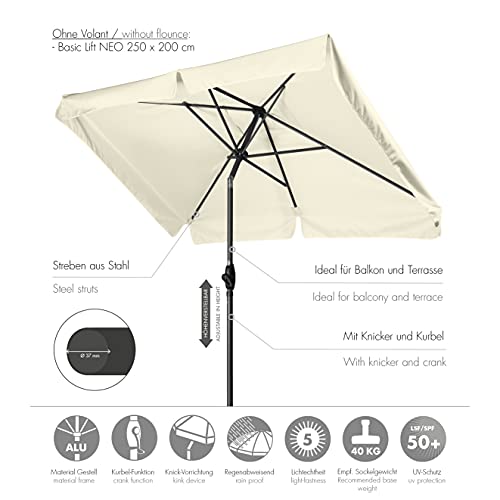 Derby Basic Lift Neo - Ombrellone Rettangolare Regolabile in Altezza, 210 x 140 cm - Naturale
