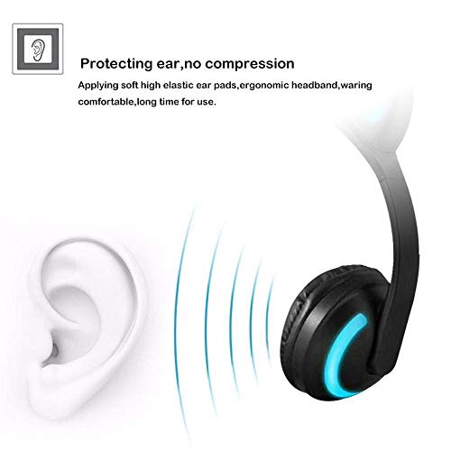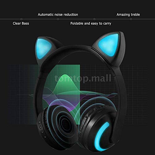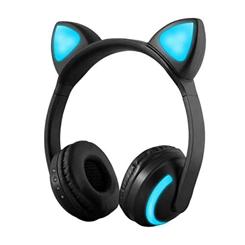 DERCLIVE Bluetooth Senza Fili Gatto Orecchio Fascia Luci LED Cuffie Auricolare Cuffia Telefono Nero-Blu