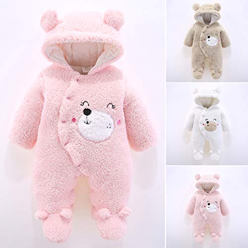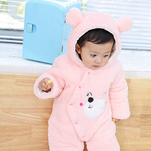 DERCLIVE Neonato Neonato Cappotto Invernale Con Piedi Pagliaccetto Anteriore Scatta Tuta Calda, rosa, 0-3 Mesi