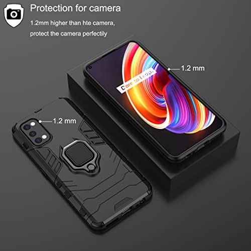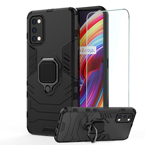 DERHAN Cover per Realme 7 Pro con Vetro Temperato, Custodia Protettiva Resistente Antiurto Robusta Case con Supporto Magnetico Rotante a 360° - Nero