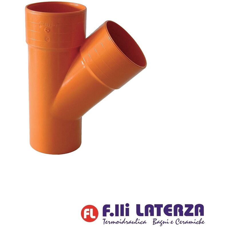 DERIVAZIONI 45° IN PVC con bicchiere ad incollaggio per scarichi acque CARATTERISTICHE: - idonea per condotte acqua civili ed industriali - in pvc di colore arancio - disponibili nei diametri dal 40 al 200 mm