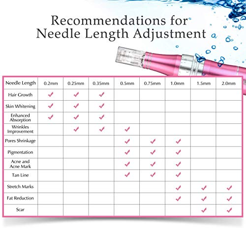 Dermapen DermaRoller Stamp Electric Pen timbro regolabile da 0.25mm-2.0mm per la cura della pelle anti invecchiamento rughe (Rosa)