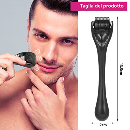 Dermaroller Viso Barba Microneedle Aghi, 0,5 mm 540-Aghi Derma Rullo para Trattamento di Perdita Capelli, Delle Rughe, Cicatrici da Acne e Smagliature (0,5mm-Nero)