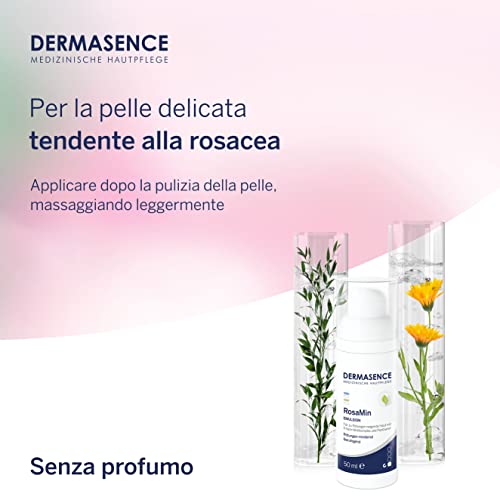 DERMASENCE RosaMin Emulsion 50 ml, Emulsione fluida per la cura del viso di pelli soggette agli arrossamenti, Trattamento viso anti-infiammazioni, Gel viso per rosacea e couperose