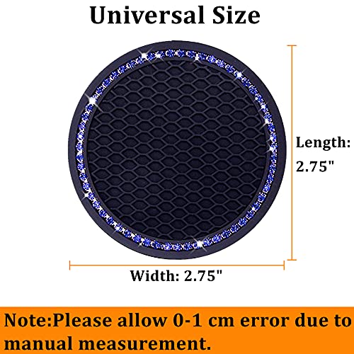 Dermasy, sottobicchiere universale per auto, 2 pezzi, in silicone, antiscivolo, con strass, accessori per auto da donna e donna, colore: blu