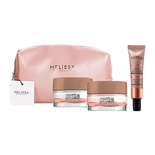 DERMOLAB Kit Anti Età Plus+: Crema Giorno Viso e Collo - Crema Notte Viso e Collo - Crema Contorno Occhi e Labbra + Pochette