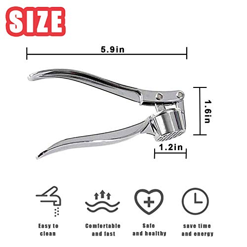 【Multifunzione】Si trova facilmente e comodamente nella mano. L'aglio può anche essere pressato senza sforzo, inserire, comprimere e poi finito. Spremete facilmente gli spicchi d'aglio, le cipolle, le radici di zenzero, le bacche o altri alimenti che volete cucinare grazie al potente effetto leva ed alle camere di pressione.