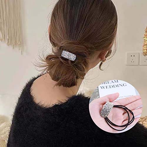 Dervivea Boho Cristallo Rettangolo Cravatta per Capelli Strass Scintillante Polsino per Capelli Corda Fascia Porta Coda di Cavallo Argento Corda per Capelli Elastici Scrunchies Fasce per Capelli