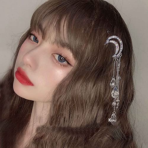 Dervivea Fermaglio per capelli con nappe con strass Boemia a mezzaluna a forma di luna e mezzaluna, accessorio decorativo per capelli per donne e ragazze