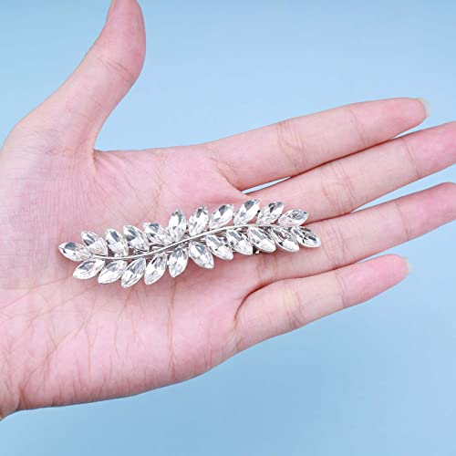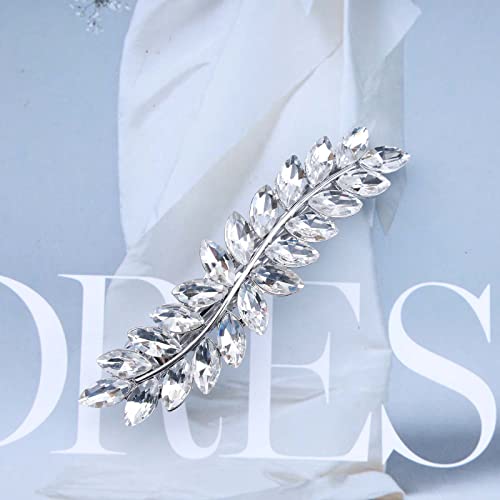 Dervivea Francese Strass Foglia Fermaglio Capelli Barrette Scintillante Cristallo Capelli Pin Argento Foglia Sposa Fermagli Capelli Brillante Matrimonio Pin Clip Accessori Decorativi Per Capelli