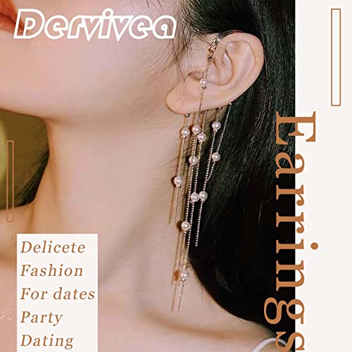 Dervivea Nero Nappe Orecchini Orecchio Avvolgere Orecchini Gemma Gotica Goccia Orecchio Clip Orecchini Vintage Lunga Frangia Nappe Orecchio Polsino Orecchini Nero Singolo Orecchio Clip