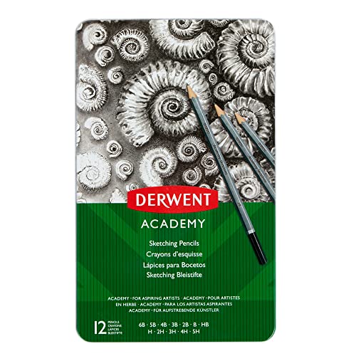 Derwent Academy Set di 12 Matite in Grafite da 6 B a 5 H ed HB in Custodia di Metallo, Adatte agli Schizzi, per Disegnare ed Illustrare