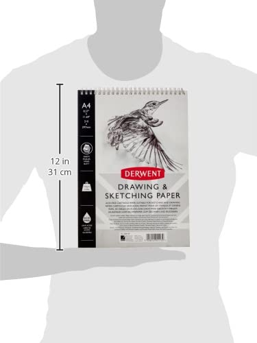 Derwent Album da Disegno con Copertina Rigida in Formato A4 da 30 Fogli di Carta senza Acidi, Dorso Rilegato, Orientamento Verticale, ottimale per i Ritratti, Qualità Professionale