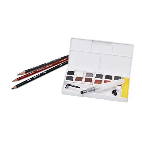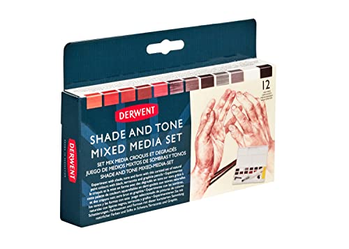 Derwent Shade & Tone Set di 16 Pezzi con Tavolozza da 12 x Colori Misti Inktense, Graphitint, Carboncino e Pastello, 1 x Matita Terracotta, 1 x Matita Onice, 1 x Matita B e 1 x Mini Waterbrush