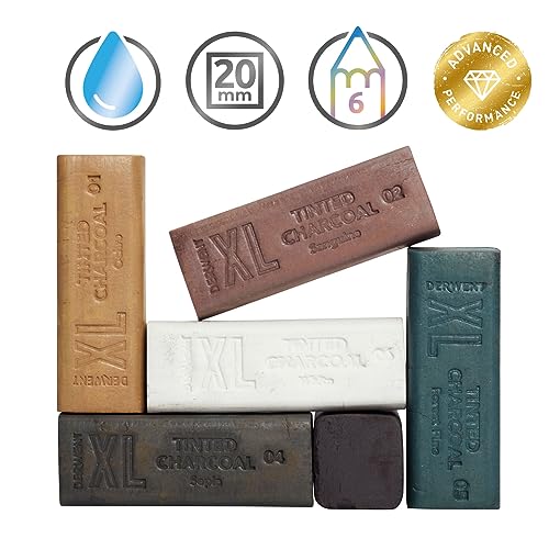 Derwent Tinted Charcoal Set di 6 Blocchi XL di Carboncino Colorato, da 60 mm, Solubili in Acqua, Adatti per Realizzare Schizzi, Disegni e Dettagli Espressivi, Qualità Professionale, 2306177