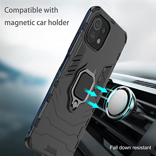 DESCHE cover per Xiaomi 11 Lite/Xiaomi 11 Lite 5G NE, con Vetro Temperato+Vetro Temperato, Custodia Protettiva Resistente Antiurto Robusta Case con Supporto Magnetico Rotante a 360° - Nero
