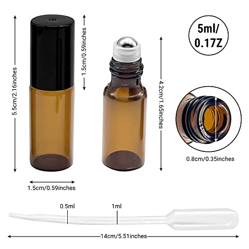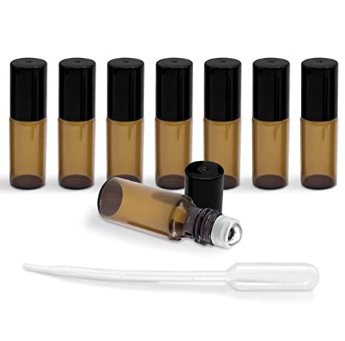 Desconocido Contenitore roll-on riutilizzabile -Bottiglia di olio essenziale- Bottiglie roll-on in vetro ambrato- Bottiglie di vetro -8 unità -Roll on 5ml-Con contagocce in plastica