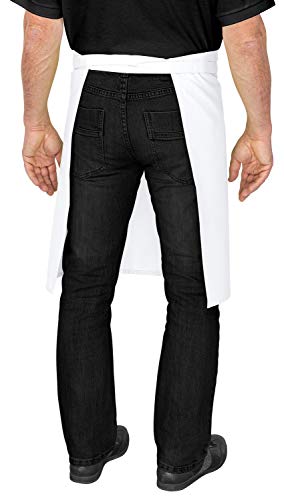 DESERMO - Grembiule classico da cucina con allacciatura anteriore, 60 x 80 cm (lunghezza x larghezza), per uomo e donna, extra leggero, in misto cotone, 190 g/m² (bianco), bianco