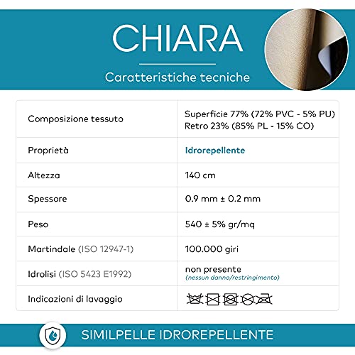 ✅ Chiara è idrorepellente, resistente pertanto a macchie ed umidità, e semplicissimo da pulire: le macchie più comuni possono essere rimosse semplicemente con un panno umido