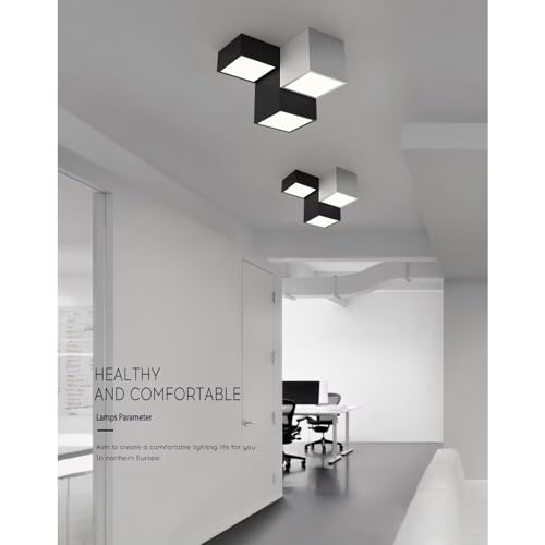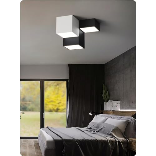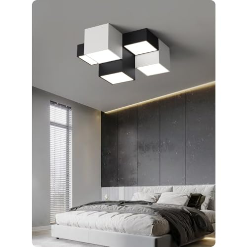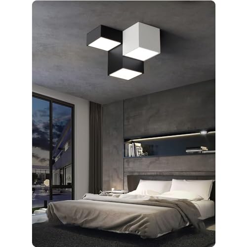 DESHOME Lampada da soffitto a LED da incasso, illuminazione a soffitto in metallo cubo bianco e nero 36W 6000K Lampadario a luce fredda Lampada da soffitto a geometria creativa per cucina Isola