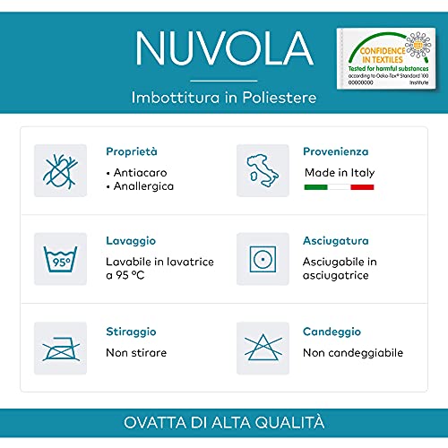 ✅ Nuvola è progettato per garantire una lunga durata nel tempo: è lavabile in lavatrice ad alte temperature (fino a 95°C) per abbattere allergeni ed acari ed asciugabile in asciugatrice