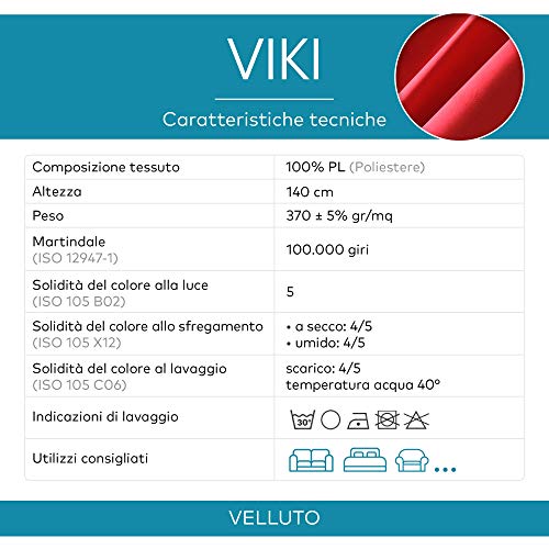 ✅ CARATTERISTICHE TECNICHE: Il tessuto Viki è composto al 100% da fibre di Poliestere che garantiscono un elevata resistenza alle sollecitazioni (Martindale: 100.000 giri);