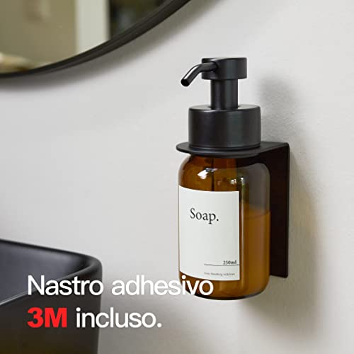 Design Amburgo Porta Sapone Doccia e Bagno in Vetro Autoadesivo | Supporto Dispenser da Parete | Pompa in Acciaio Inossidabile | Senza Buchi | Nero opaco da 250 ml