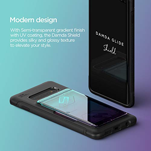 VRS DESIGN Cover Compatible per Cover Samsung Galaxy S10 Plus [Damda Shield] Semiautomatico Custodia a Portafoglio [US Patent No.9,661,116 B1] Raccoglitore Scorrevole con Porta Carte - Verde + Viola
