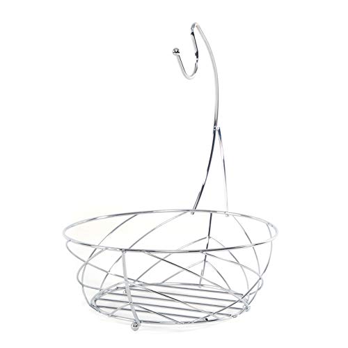 Design Delights - Cestino portafrutta in Metallo Cromato con Ganci a Banana, Diametro 25 cm