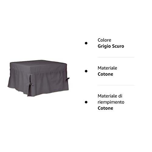 AM DESIGN Fodera in Cotone SFODERABILE POUFF Pouf PUF Letto 74x74xH47 cm Rivestimento Made in Italy (Grigio Scuro)