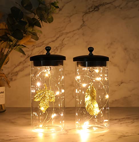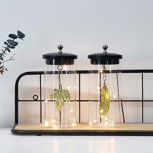 【LAMPADA DECORATIVA PENDENTE FOGLIA】La lampada decorativa vintage a grandezza naturale alimentata a batteria, con cilindro in vetro trasparente, lucine bianche calde, copertura in metallo nero e pendente foglia oro, crea un'aura di fascino antico - Molto adatta per feste da tavola, sale, terrazze, matrimoni, feste, Natale, Capodanno e altre decorazioni festive.