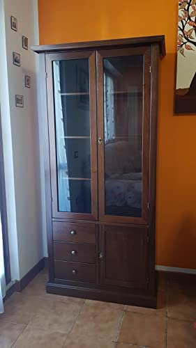 Mar.c.a. Design - Libreria da Parete con 4 Cassetti e 8 Vani, Mobile Soggiorno con Vetrina Elegante in Legno di Pioppo Noce Scuro - Arte Povera Made in Italy - Misura 94x41x187
