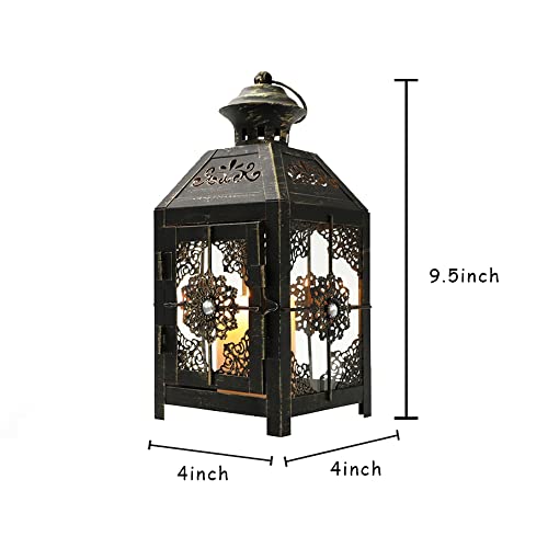 【LANTERNA A CANDELA IN METALLO VINTAGE】La lanterna a candela vintage a grandezza naturale, con lastre di vetro, parte superiore speciale e cornice con motivo invecchiato dal nero con polvere di pennelli dorati, crea un'aura di fascino del vecchio mondo - Aggiunge un tocco meraviglioso a qualsiasi spazio con il grazioso matrimonio di bellezza e praticità - Oggetto accattivante per tavoli, bar, terrazze, portici;