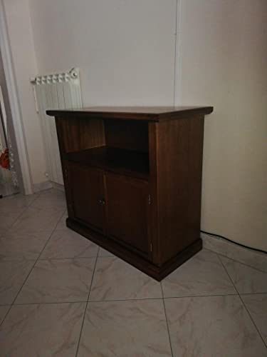 Mar.c.a. Design - Mobile Porta TV da Terra Noce Scuro in Legno di Pioppo con 2 Ante e Piano Centrale per Impianto - Mobile Arte Povera - Misura 84x40x80