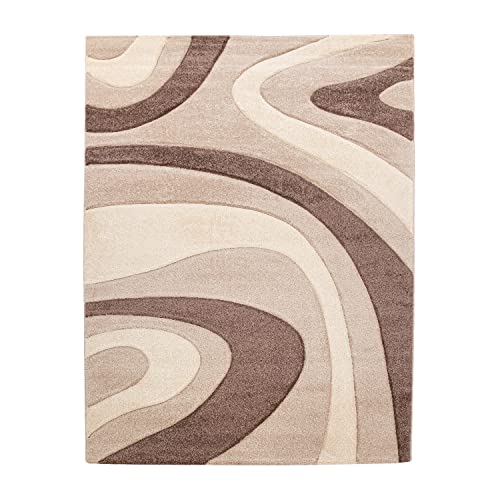 T&T Design - Morbido tappeto moderno a pelo corto per soggiorno camera da letto sala da pranzo motivo a onde disponibile in diversi colori Colori e taglie, Beige, 80 x 300 cm