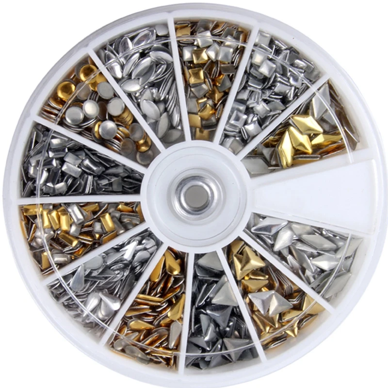 600 pcs 3D Design Nail Art Different Metallic Studs Gold & Silver Stud Wheel Manicure