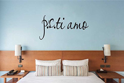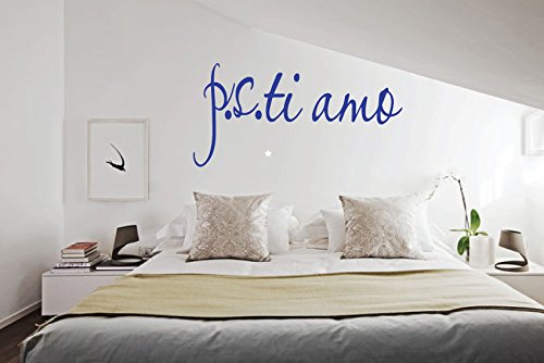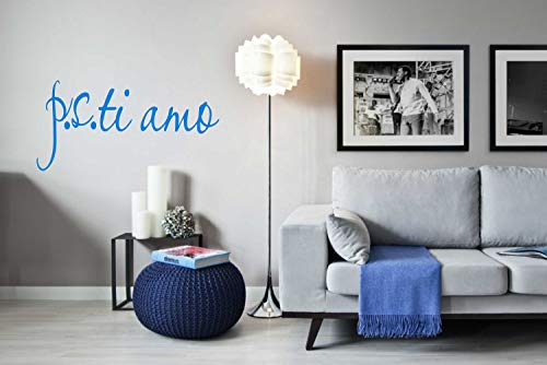 DESIGN ORIGINALE- ADESIVO MURALE FRASE SOGGIORNO CAMERA DA LETTO" P.S. TI AMO" ADESIVO DA PARETI MURI REGALO FIDANZATA FIDANZATO RAGAZZA RAGAZZO MOGLIE Adesivo4You (LARGE 150X80 CM, BLU)