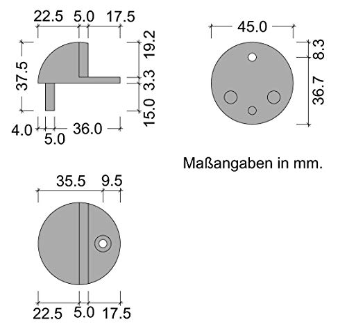 Dimensioni: profondità: 44,5 mm - altezza: 25,5 mm - gomma: 5 mm - Diametro perno: 6 mm - Lunghezza perno: 16 mm - Materiale: acciaio inox V2A inossidabile - Superficie: rivestimento PVD - nero grafite opaco