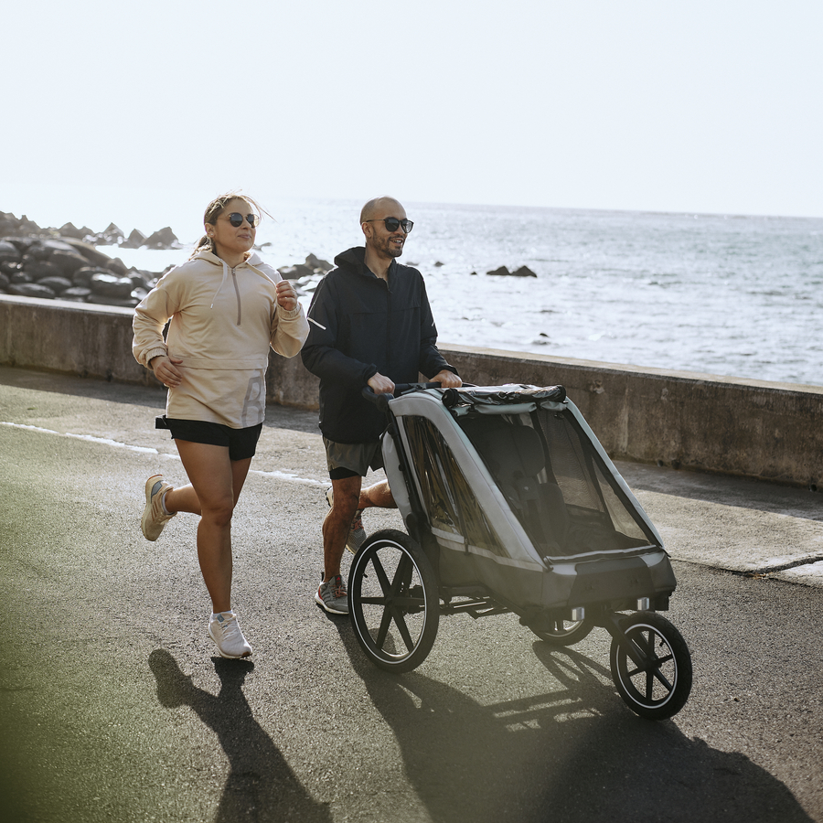 Dettagli del prodotto: Ruota pneumatica jogger extra-large (24,5 cm) per un viaggio confortevole Trasforma il rimorchio per bici in un jogger Guida più fluida e maggiore stabilità direzionale durante il jogging Facile e sicuro da agganciare con un clic I freni a mano e a disco, così come la cinghia a mano, assicurano sempre una guida e una frenata controllate Dimensioni e peso: Dimensioni del prodotto (LxLxH): 46,0 x 10,5 x 35,0 cm Peso: 1,4 kg Materiale e cura: Plastica e acciaio Pulire con un panno umido La fornitura comprende: 1 x Sport Kit jogger bike