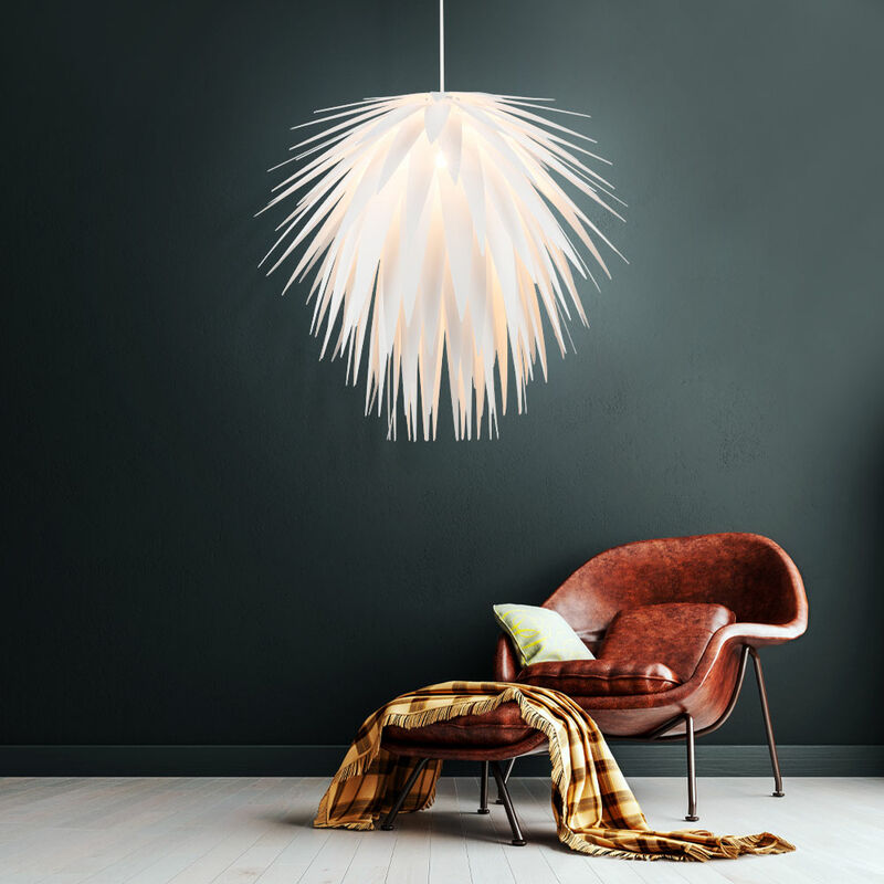 Descrizione Accattivante lampada a sospensione per il soggiorno Questa accattivante lampada è una vera attrazione. Nell'apparecchio è possibile utilizzare una potente lampada fino a 60 watt e una presa E27. Le lampade a LED consumano solo una quantità minima di elettricità e hanno un consumo persino inferiore rispetto alle lampade a risparmio energetico . Questo protegge l'ambiente e il tuo portafoglio. Una sorgente luminosa a LED di alta qualità è inclusa nella fornitura. Dettagli lampada • tipo di lampada: lampada a sospensione • materiale: plastica • colore: bianco • dimensioni diametro x altezza in cm: 49,5 x 44 • altezza totale in cm: 140 • Attacco: 1x E27 • Sorgente luminosa inclusa: Sì • Sorgente luminosa: 1x 4 watt • Flusso luminoso: 1x 350 lumen • Colore della luce: bianco caldo • Alimentazione: da 220V a 240V, da 50Hz a 60 Hz Dettagli sorgente luminosa • Tipo di sorgente luminosa: LED • Attacco: E27 • Design: sfera (bianco-opale) • Materiale: opaco nichel, vetro • Flusso