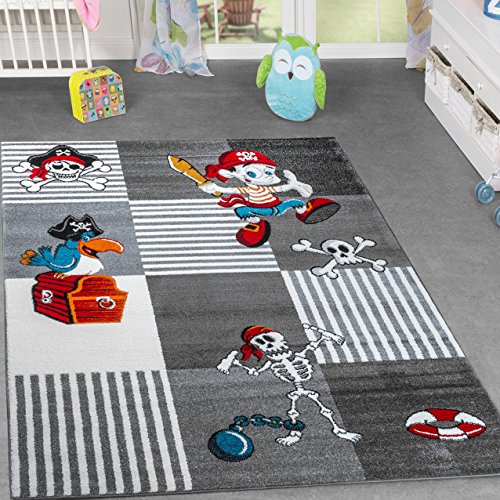 T&T Design Tappeto per Bambini Pirata Mondo Tesoro Pappagallo Sala Giochi Karo Grigio Antracite, Grau, 80 x 150 cm