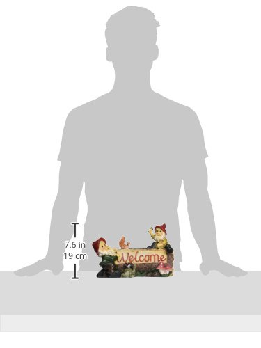 Design Toscano QL3334 Statua Saluti dal Giardino Gnomi Welcome, 12.5x28x19 cm